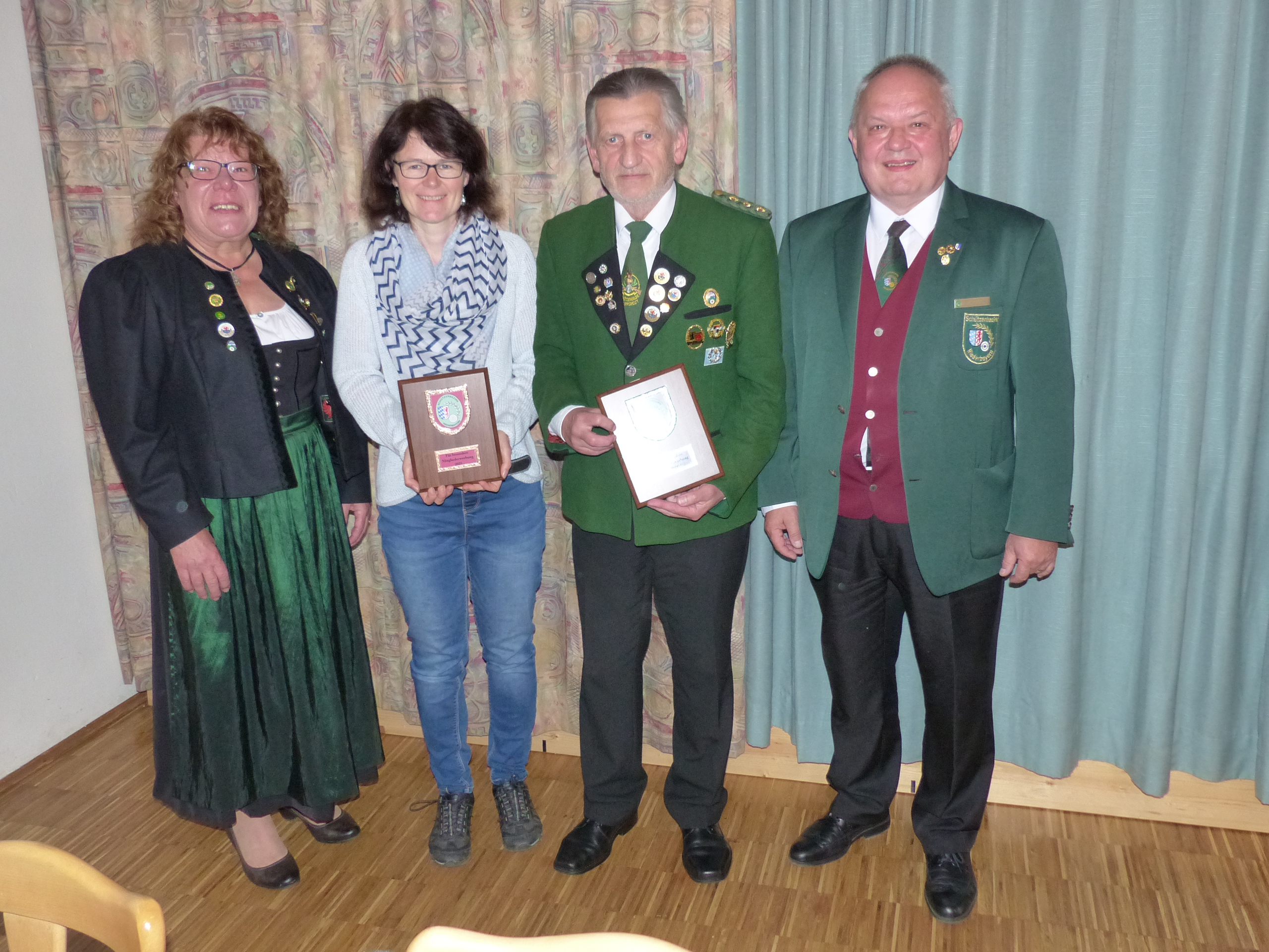Zum angesprochenen Rückgang von Vereinen und Mitgliedern führte Hainthaler aus, dass seit dem Jahr 2006 zwar die Zahl der Schützenvereine von 825 auf 725 zurückgegangen ist, sich die Zahl der Mitglieder aber trotzdem um hundert erhöht hat. „Das Engagement lohnt sich“, munterte der Bezirksschützenmeister die Wolfsteiner Schützenvereine auf und zeichnete die drei Vereine mit Plaketten aus, die im letzten Jahr die größten Mitgliederzuwächse aufweisen konnten: Schützengesellschaft Atzldorf (plus 27!), Schützengilde Philippsreut (+ 7) und Birkenwaldschützen Rehberg (+ 6).